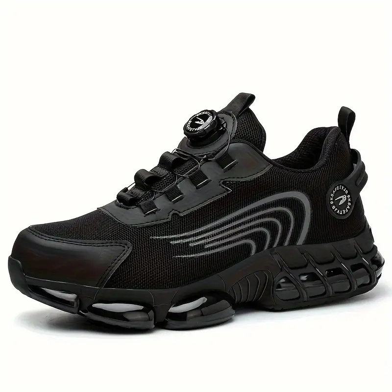 Queste scarpe da ginnastica sono progettate per proteggere le dita dei piedi dalla caduta di oggetti. Il puntale in acciaio e la suola antiscivolo le rendono adatte a varie superfici e condizioni atmosferiche.